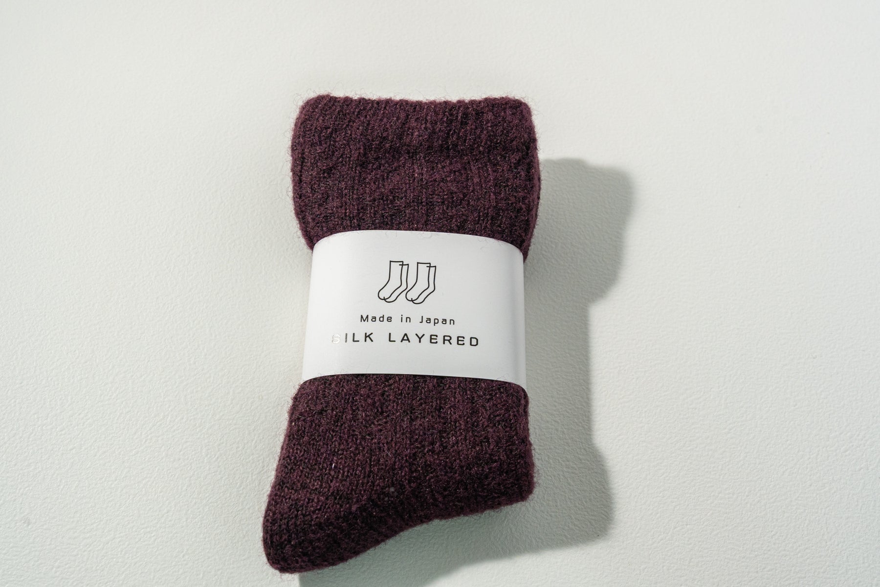 1.たむら靴下店 シルクとウール二重ソックス エンジ