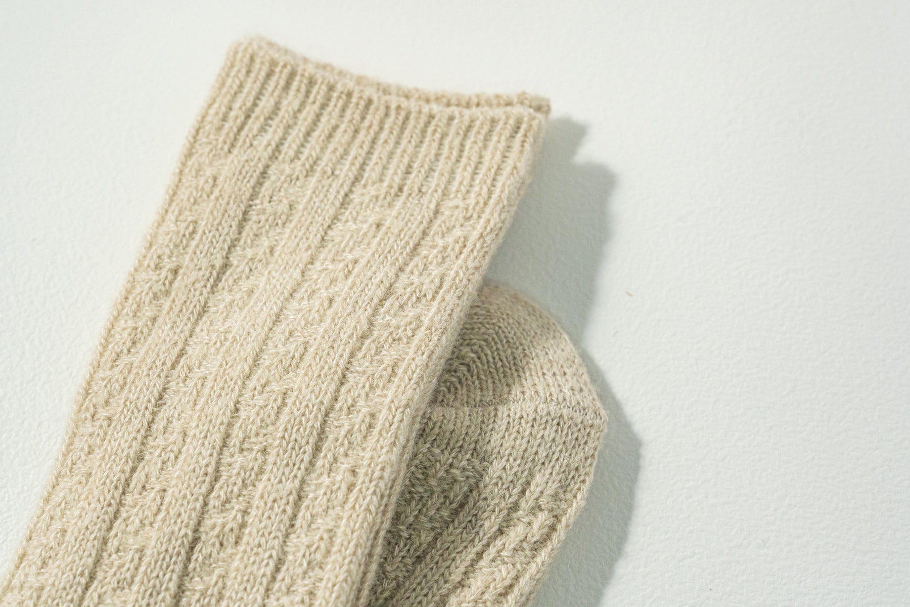 ※普段から、セーターなどを着るとチクチクする、痒くなるという敏感肌の方には、こちらの靴下でも同じ状況になることがあるかと思います。 柔軟剤で2~3回洗濯していただくと軽減されます。
