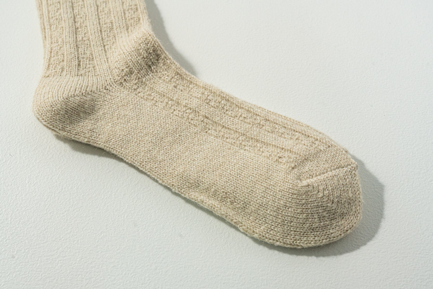 底冷えする冬の足元に。贅沢にウールを使って作られたソックスです。 上質なウールが空気を含んで足の芯から温めます。
