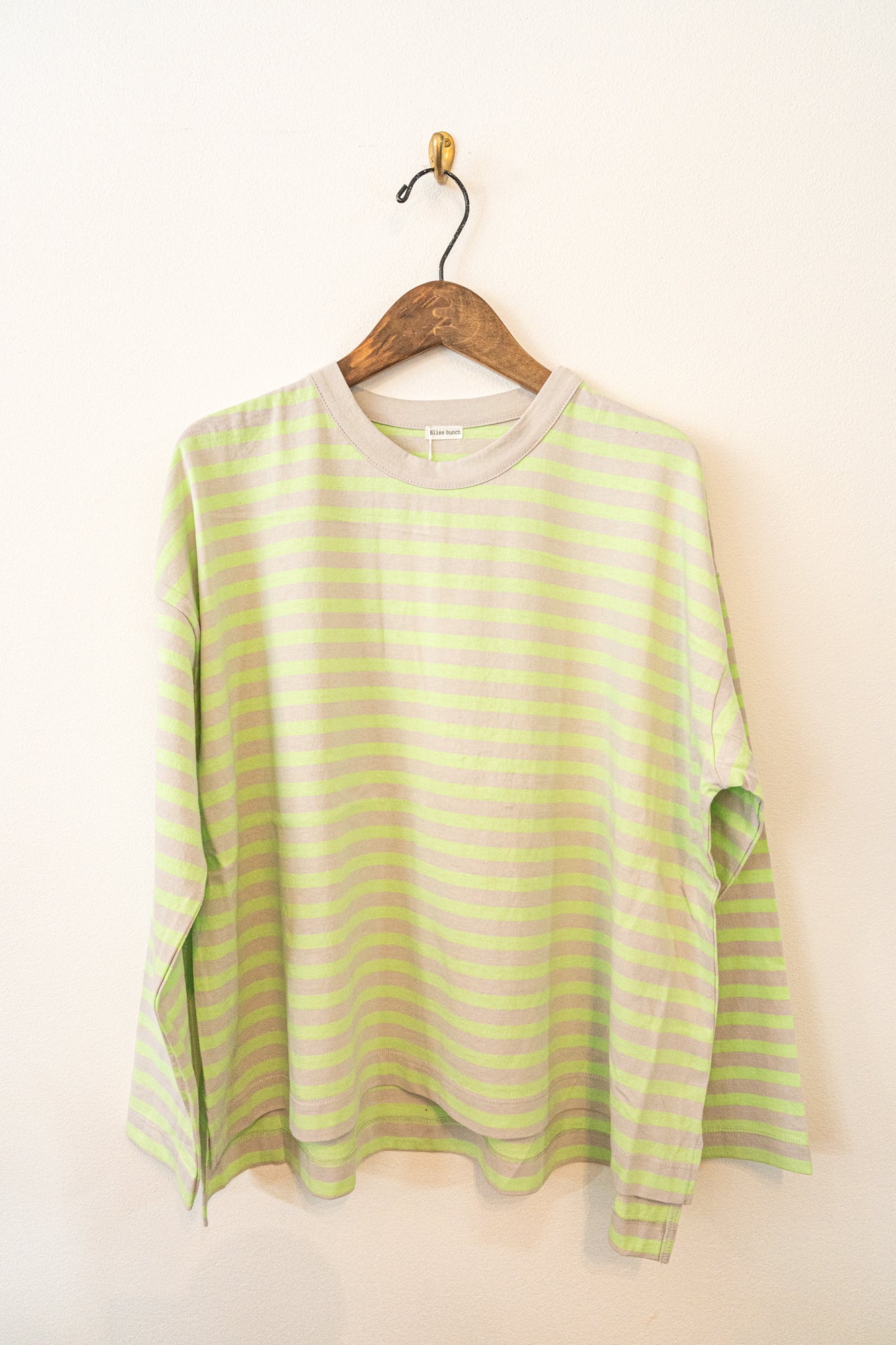 ワイドな身巾でラフな着心地。前後差を付けたベーシックシルエット。