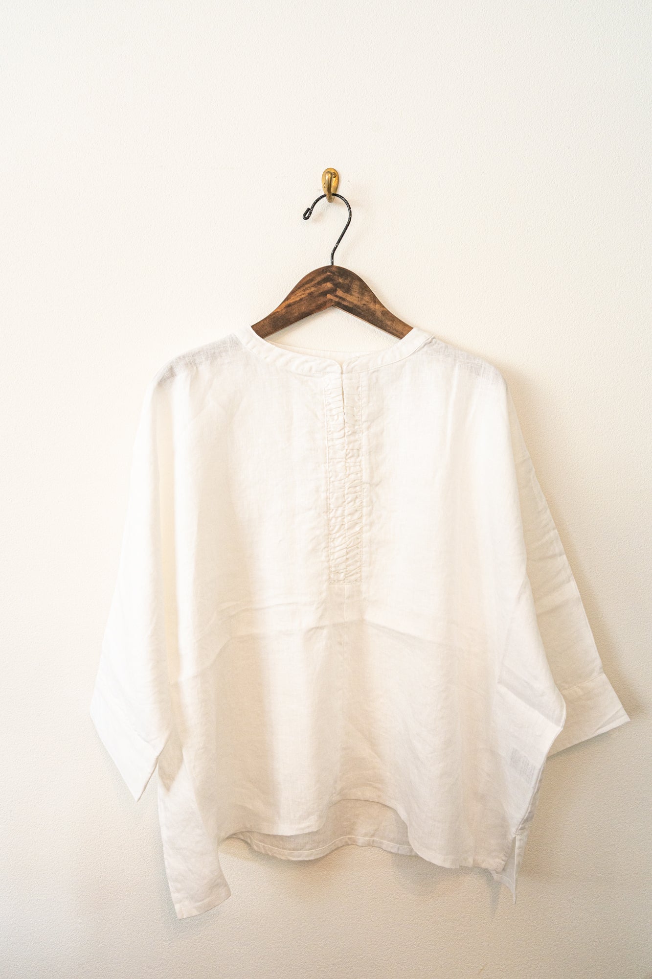 上質なリネン100%の風合いを活かした、大人のためのブラウスです。