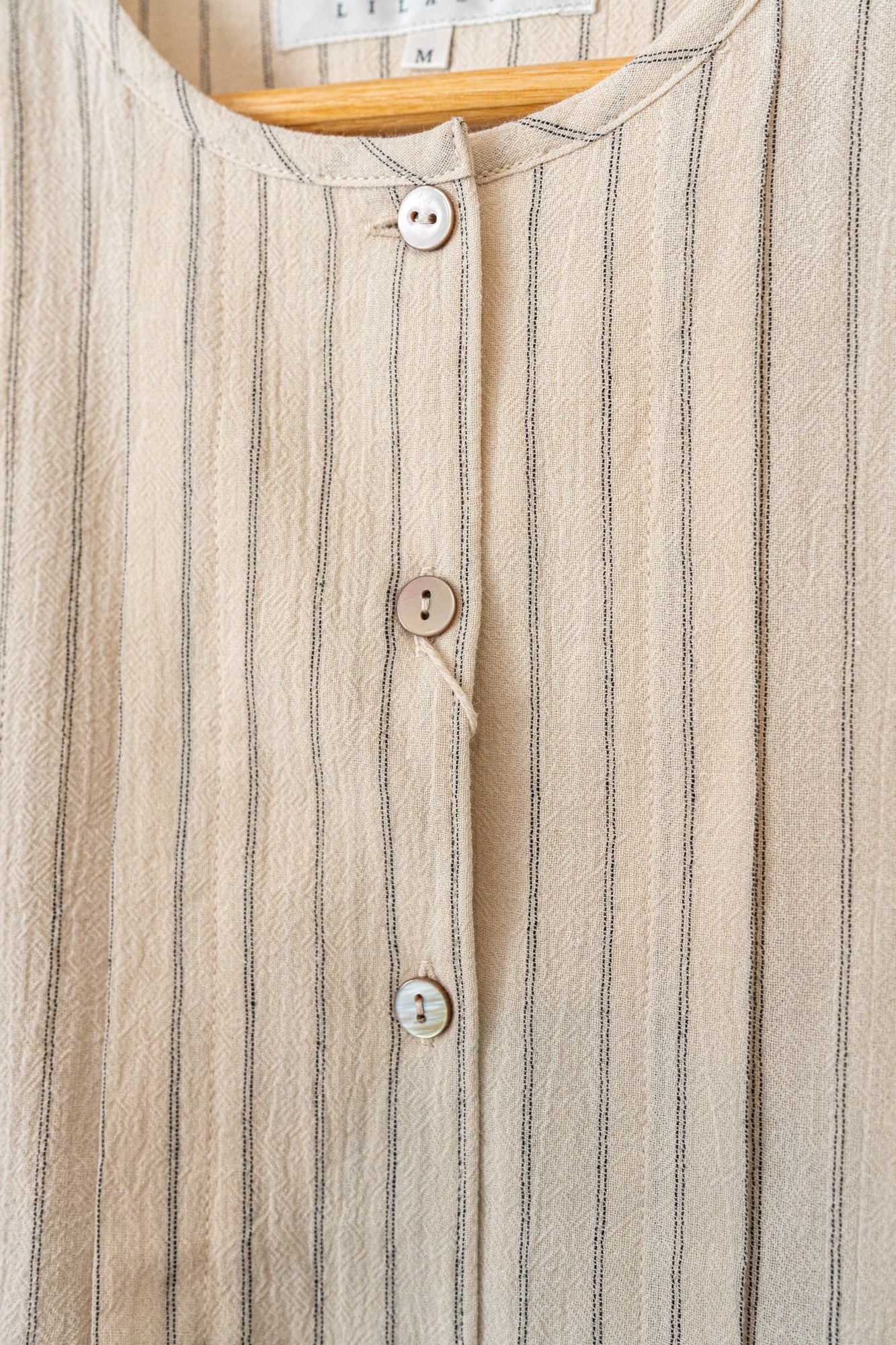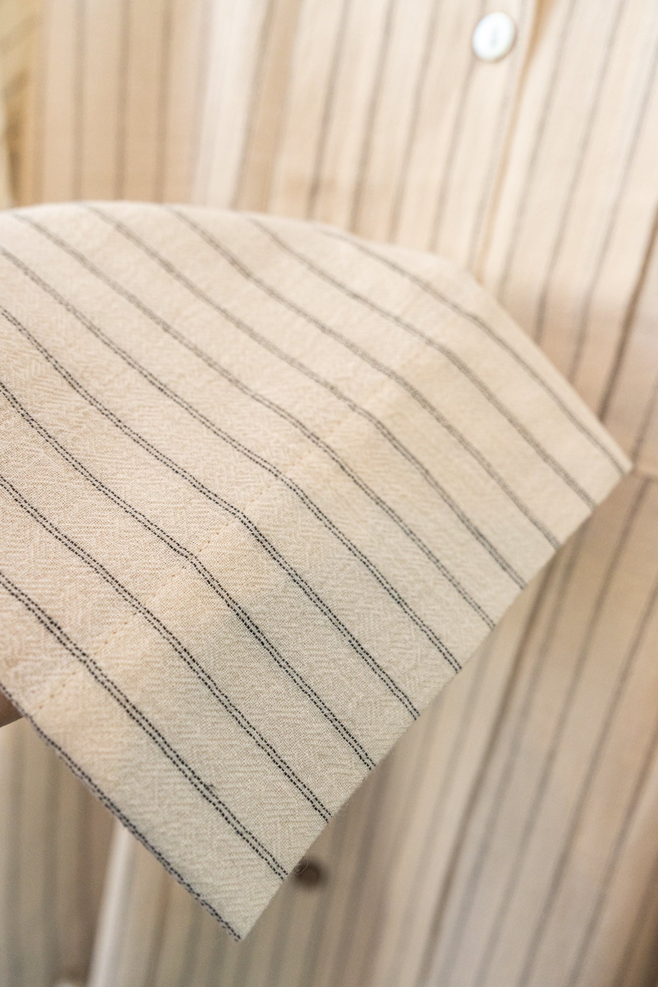 ハリがありながらもしなやかなタッチで、サンドウォッシュ加工によって独特な表面感を出したコットン素材。