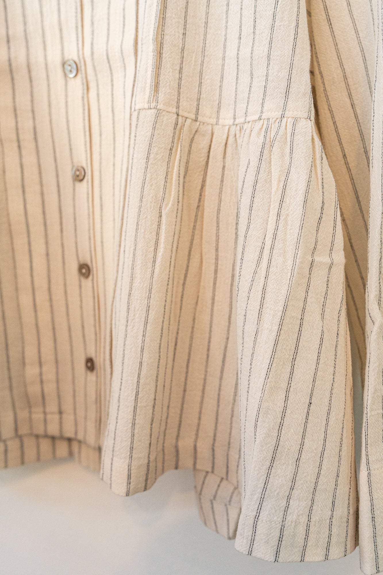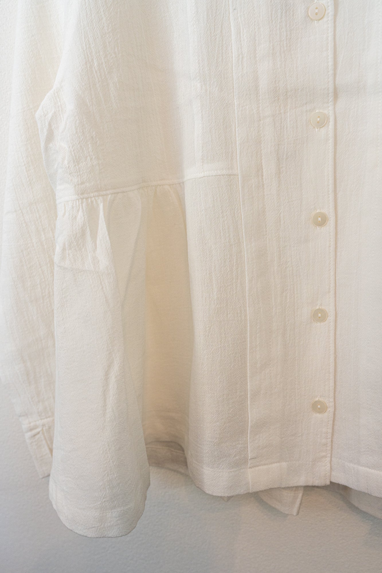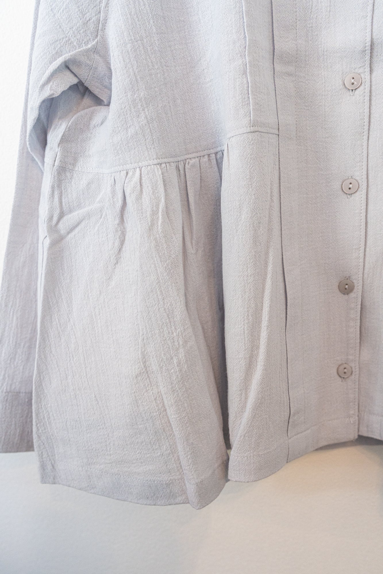 前後差のある腰の切替えからふんわりと広がるシルエットです。肌寒さを感じる時期にも羽織れるアイテムです。