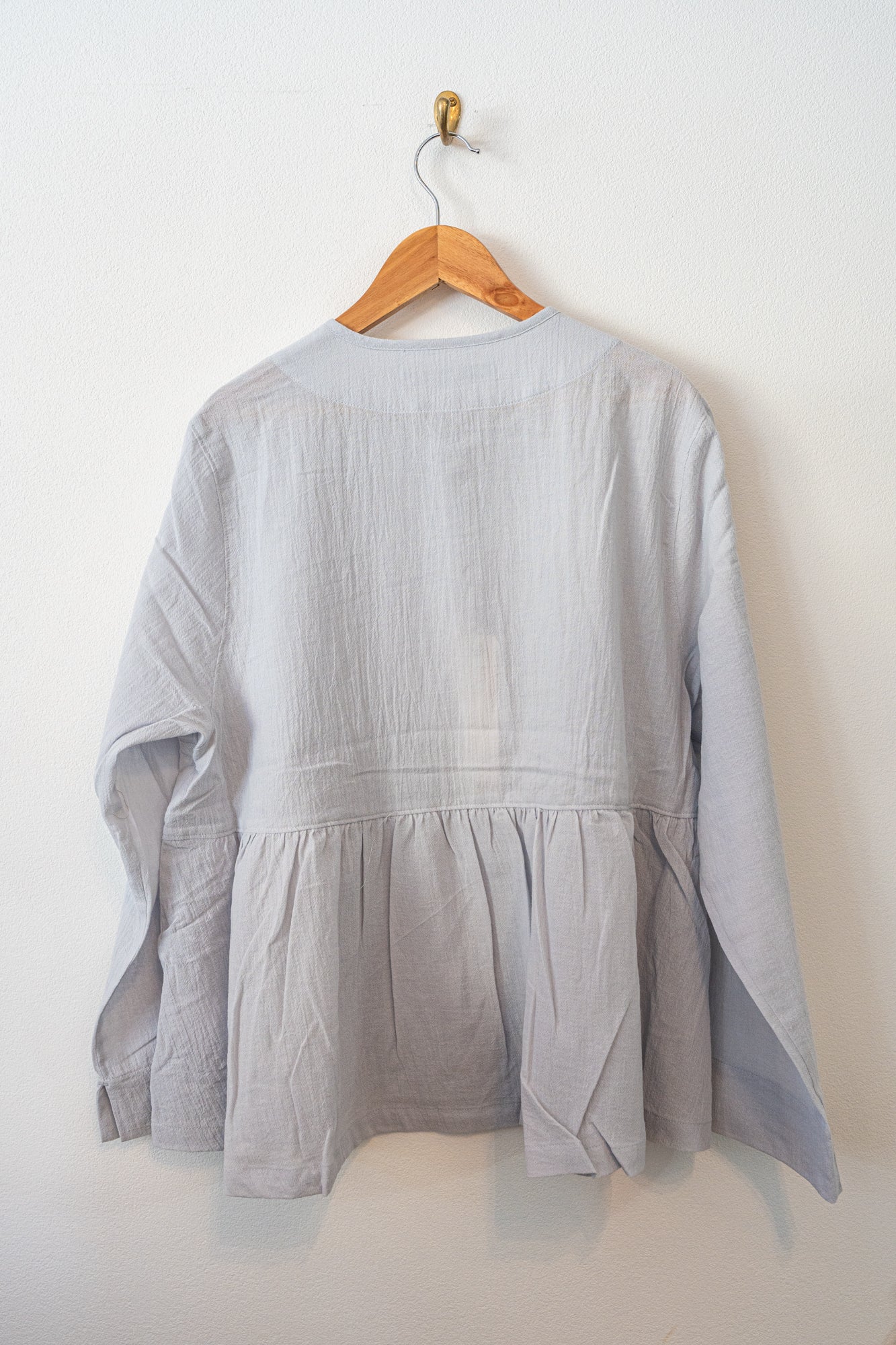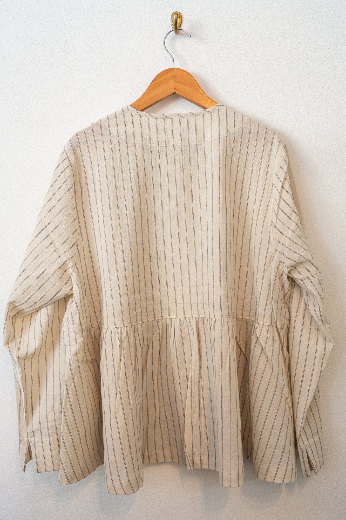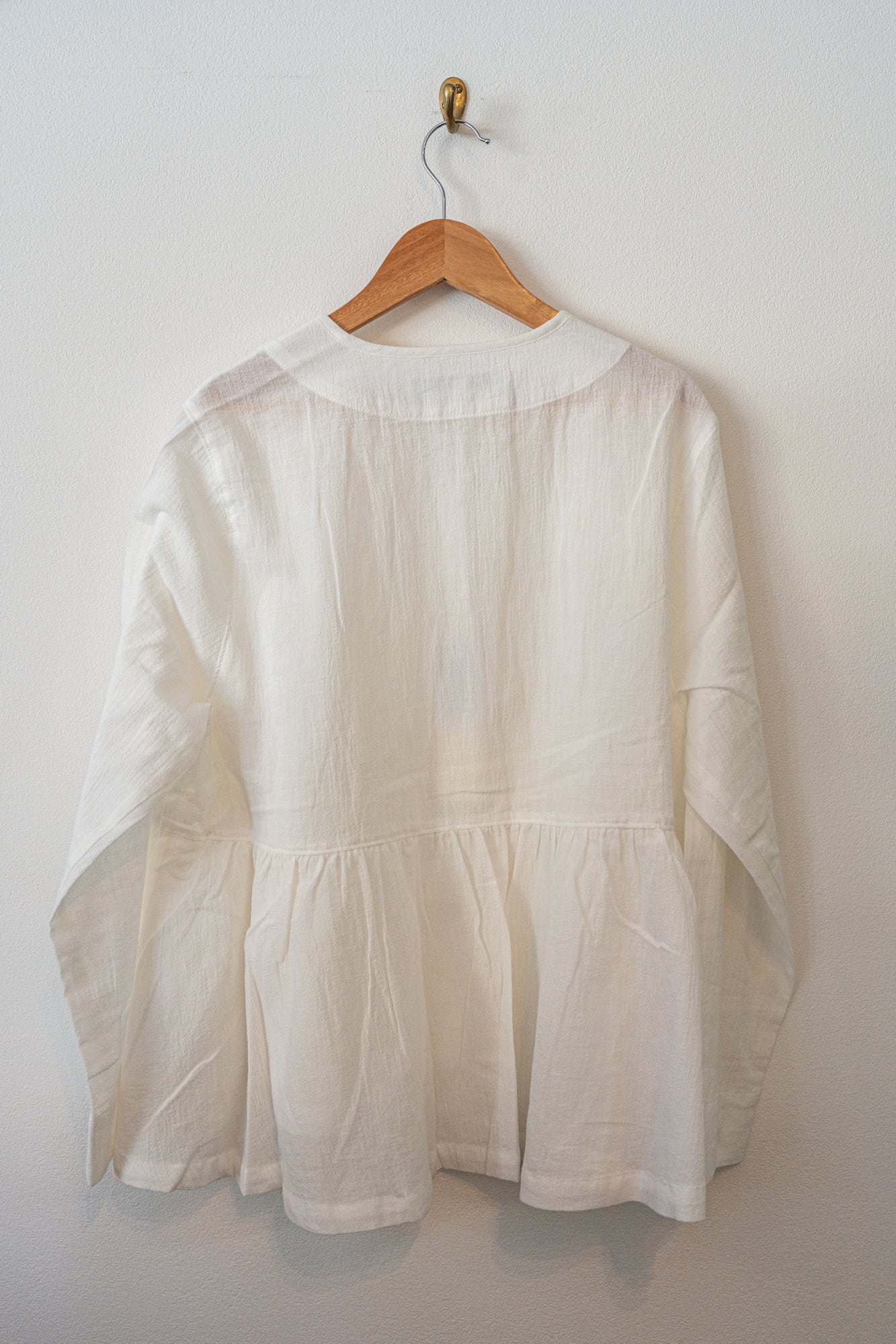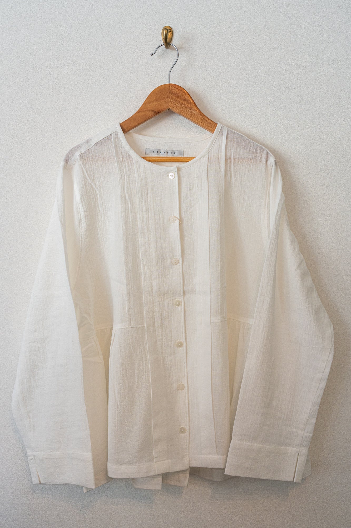 前後差のある腰の切替えからふんわりと広がるシルエットです。肌寒さを感じる時期にも羽織れるアイテムです。