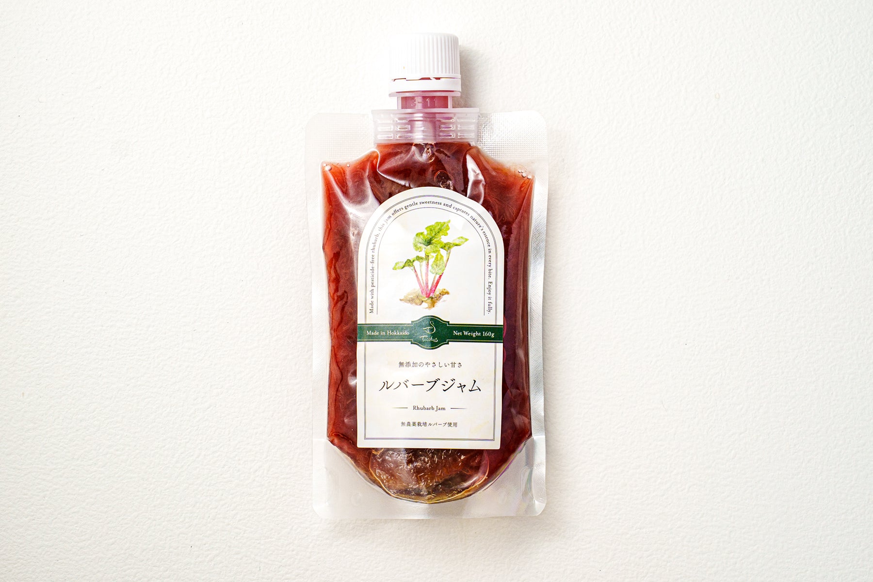 北海道産で化学肥料、農薬不使用で育ったルバーブを100%使用したジャムです。