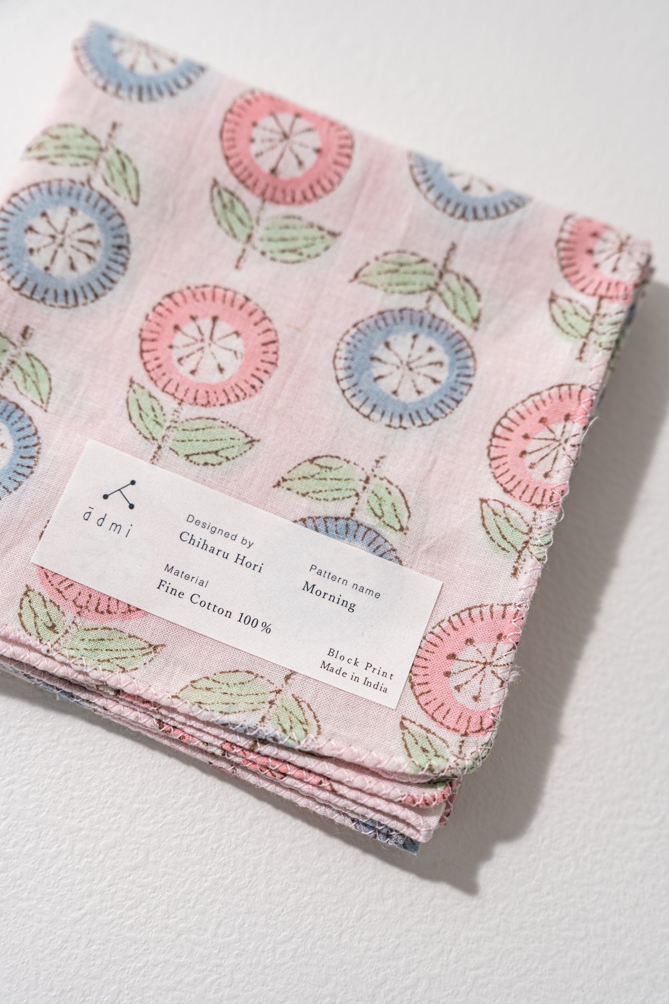 admiのハンカチは、薄手でさらりとした上質なインド綿を使用しています。 驚くのはその吸水性と乾きの早さ。軽くてかさばらないので、小さめのバッグやポケットにもすっきりと収まります。
