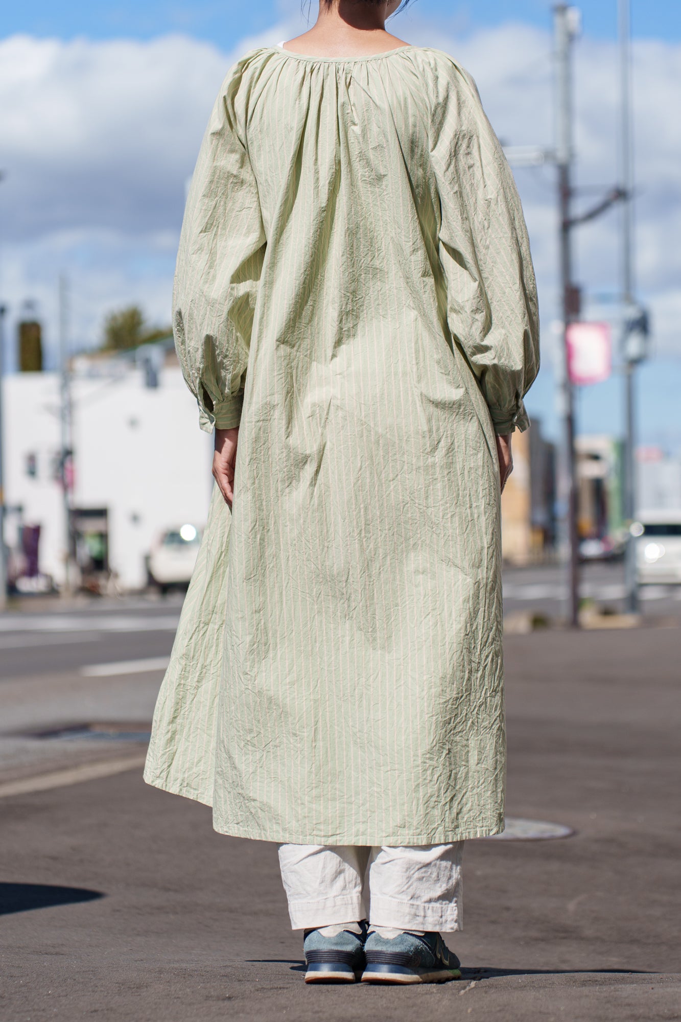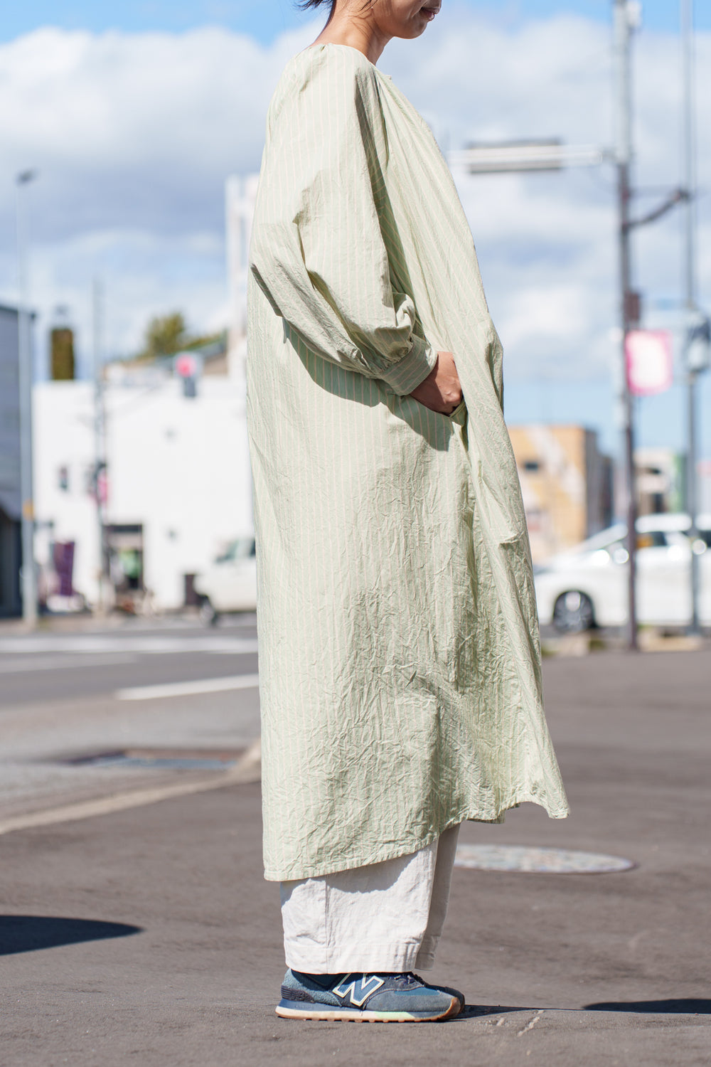 オリジナルカラーの先染めストライプが目を惹く、タイプライター素材のワンピースです。一枚でコーディネートが完成するので、忙しい日もさっとおしゃれに決まります。